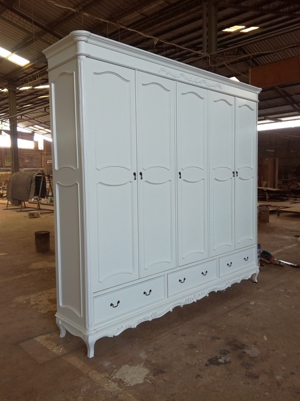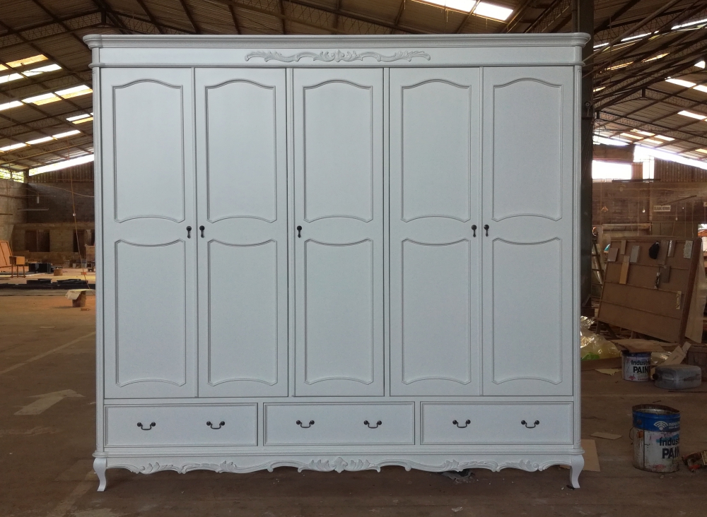 ארון בגדים לבן רחב עם חמש דלתות ושבע מגירות