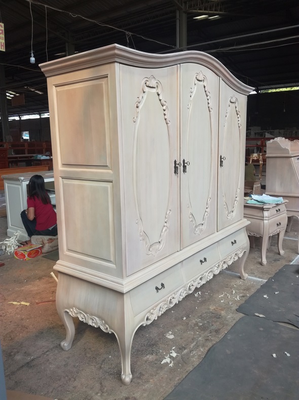 ארון גילופי עץ עם רגליים בצבע לבן וגימור מט