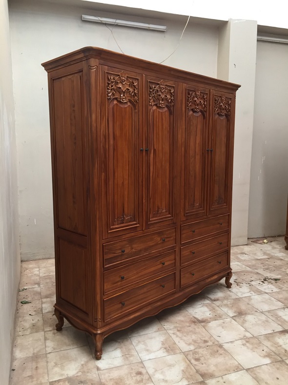 ארון עץ רחב 4 דלתות 6 מגירות חום