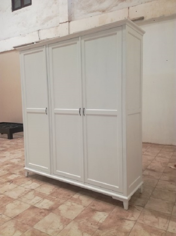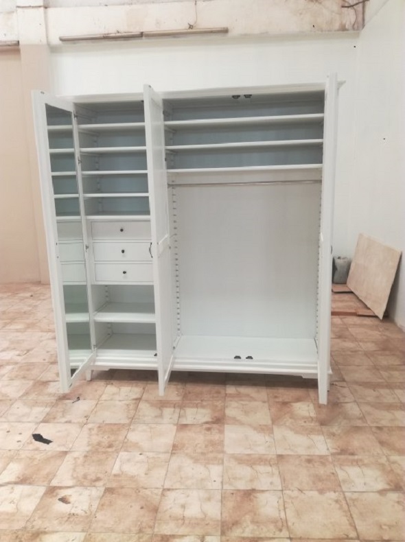 ארון בגדים 3 דלתות בצבע לבן מעוצב עם מגירות פנימיות