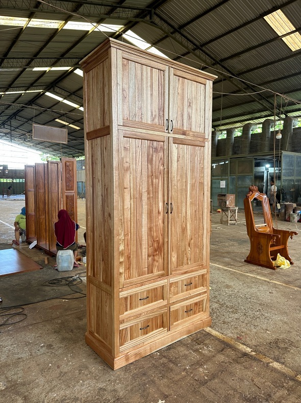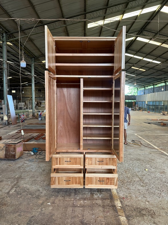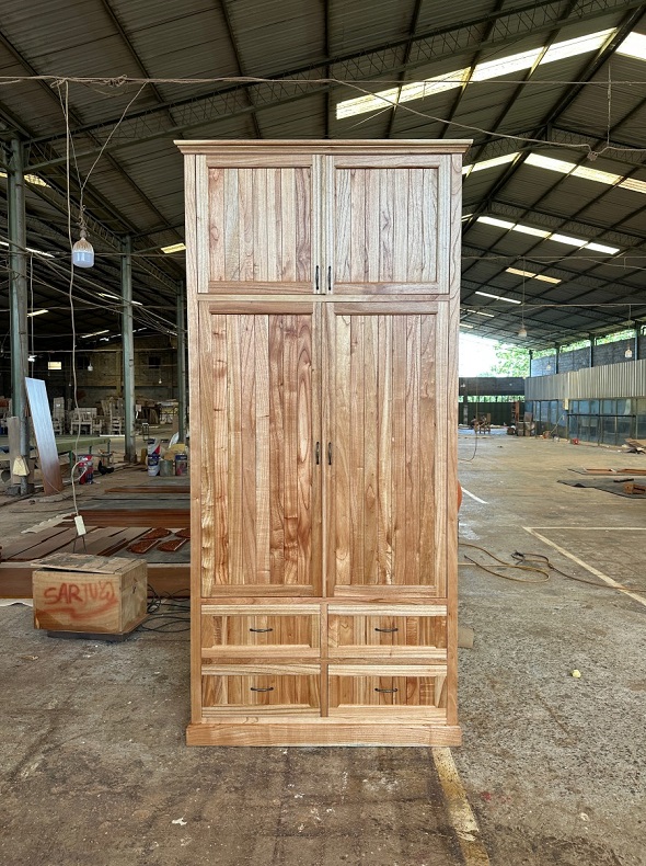 ארון עם ארבע דלתות וארבע מגירות בצבע טבעי בהיר