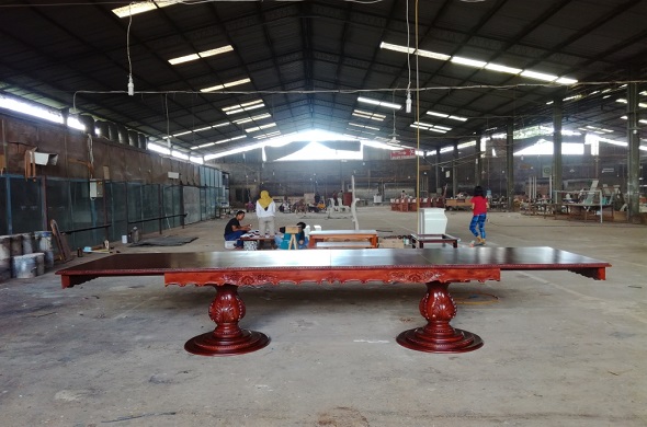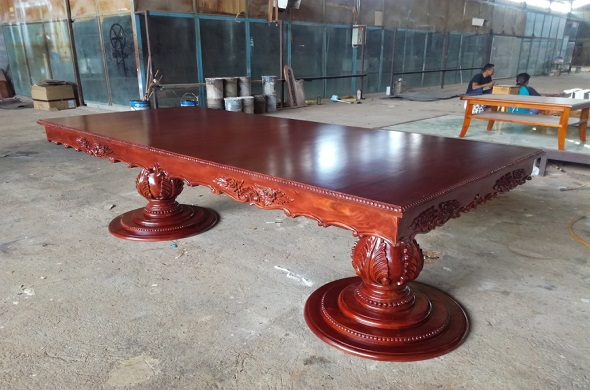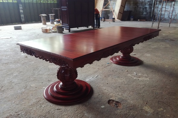 שולחן נפתח ארוך עם שתי רגליים מעץ מהגוני אדום