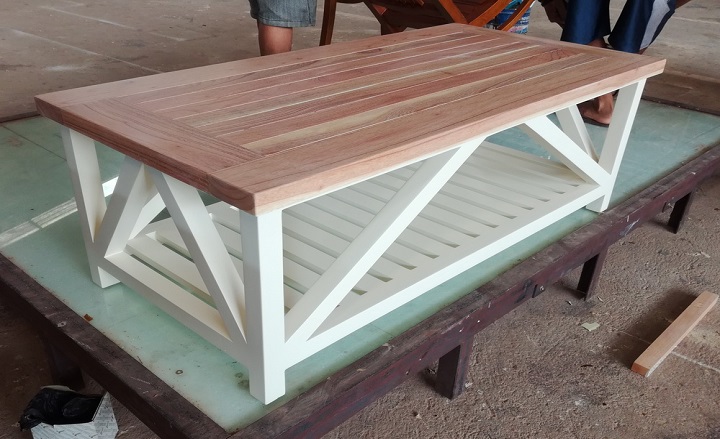 שולחן עץ דו קומתי קטן לסלון בצבע לבן וטבעי