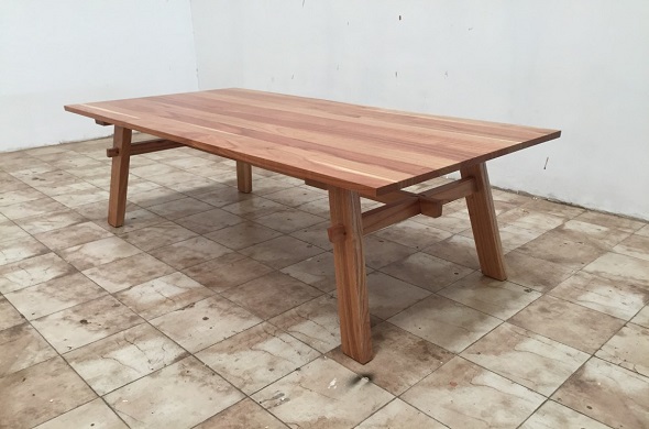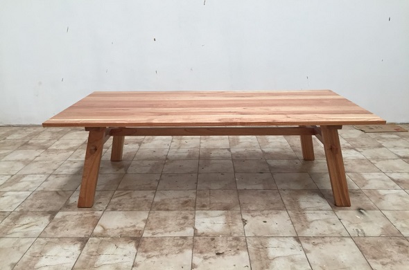 שולחן עץ מלבני במראה טבעי עם 4 רגליים
