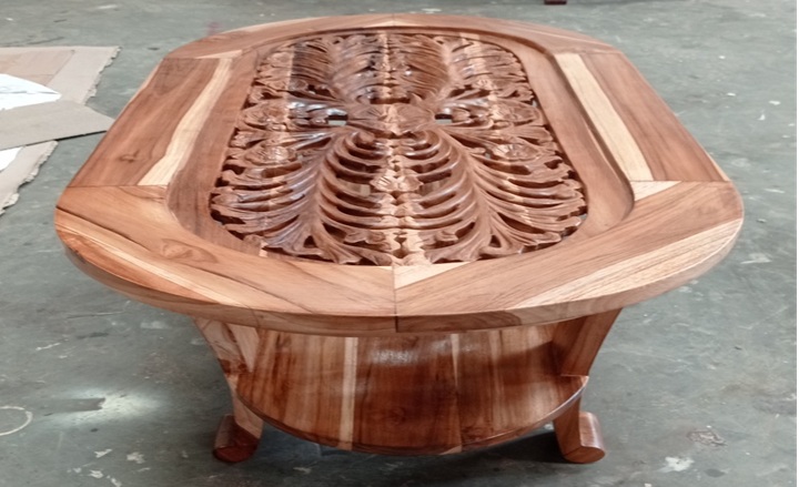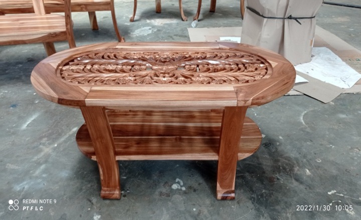 שולחן קפה אליפטי לסלון דו קומתי עם גילוף