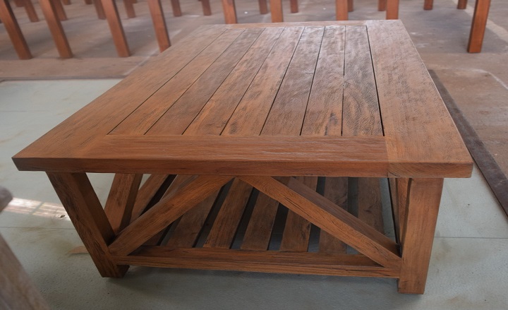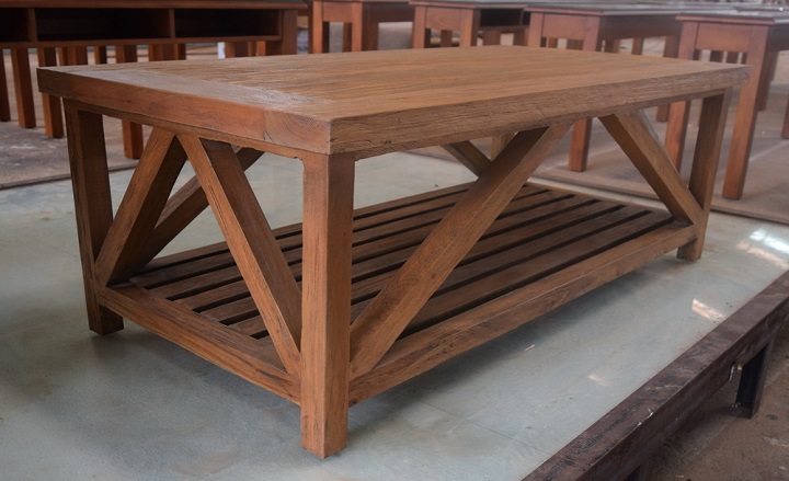 שולחן קפה לסלון עם שתי קומות מעץ מלא