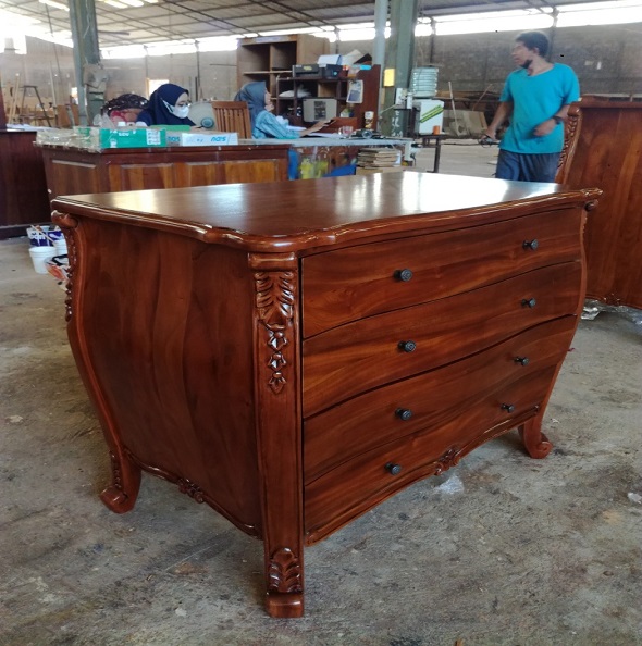 שידה מעוגלת עם עיטורים 4 מגירות בצבע חום