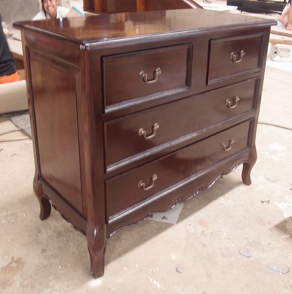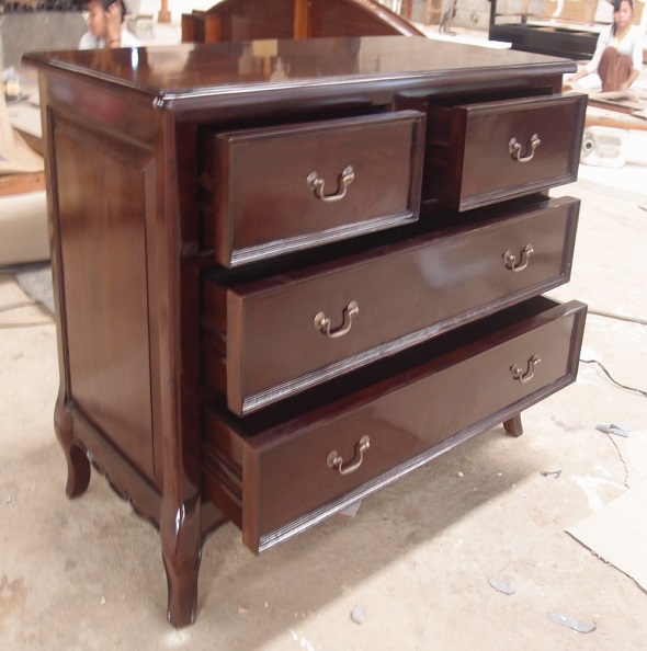 שידה לחדר שינה עם ארבע מגירות בצבע חום כהה מעוצבת בסגנון אנגלי