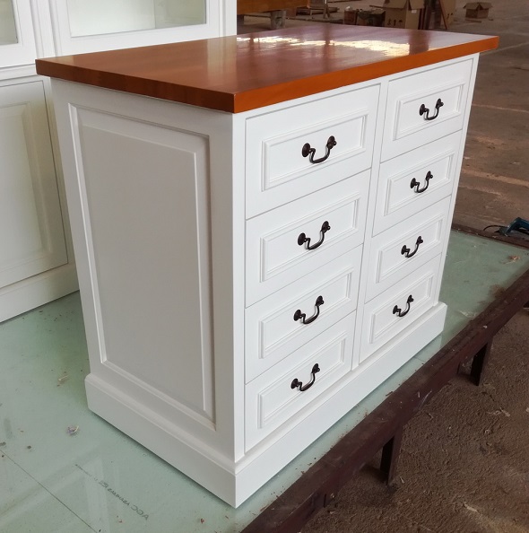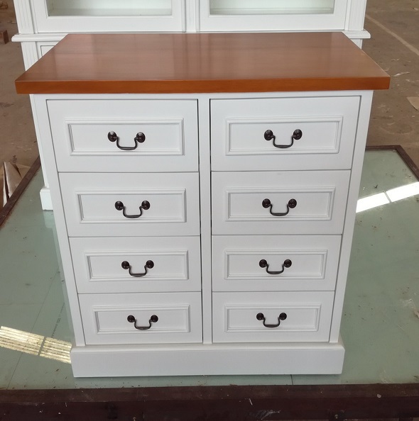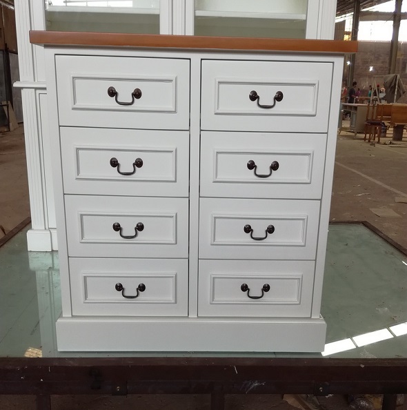 שידת שמונה מגירות מרובעת בצבע לבן עם ידיות שחורות